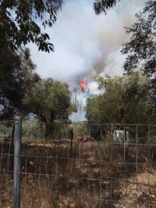 Πυκνοί καπνοί ζώνουν όλη την περιοχή, ενώ η φωτιά λαμβάνει μεγάλες διαστάσεις.