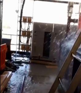 Το τελευταίο πρόβλημα όμως δεν είναι απλώς ότι καθυστερεί την παράδοση του έργου. Το νερό από τον σπασμένο αγωγό έτρεχε για περίπου 45 λεπτά με αποτέλεσμα να πλημμυρίσουν κυριολεκτικά δύο πατώματα στο συγκεκριμένο κομμάτι της κερκίδας. Αλλά δεν ήταν μόνο η πλημμύρα…