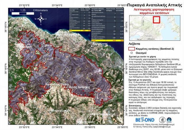 Οι πεντάλεπτες λήψεις χρησιμοποιούνται για έγκυρους συναγερμούς σε σχέση με το πού αναπτύσσονται πυρκαγιές. Ανά πέντε λεπτά ενημερώνουμε το Κέντρο Επιχειρήσεων της Πυροσβεστικής Υπηρεσίας και αρκετά συχνά πρόκειται για φωτιές οι οποίες δεν έχουν γίνει ακόμη αντιληπτές από την Πυροσβεστική ή από το κοινό. Τουλάχιστον δύο φορές την ημέρα και ενώ συνεχίζεται αυτή η διαδικασία, λαμβάνουμε από άλλα δορυφορικά συστήματα εκτίμηση της καμένης έκτασης και των καταστροφών ενώ η πυρκαγιά είναι ακόμη σε εξέλιξη. Η καμένη έκταση υπολογίζεται σε μέση χωρική ανάλυση (375 μέτρα) τουλάχιστον μία φορά την ημέρα, κάθε φορά που ένας δορυφόρος πολικής τροχιάς συλλέγεται δυναμικά από τις κεραίες του Κέντρου Beyond» λέει ο Χαράλαμπος Κοντοές.