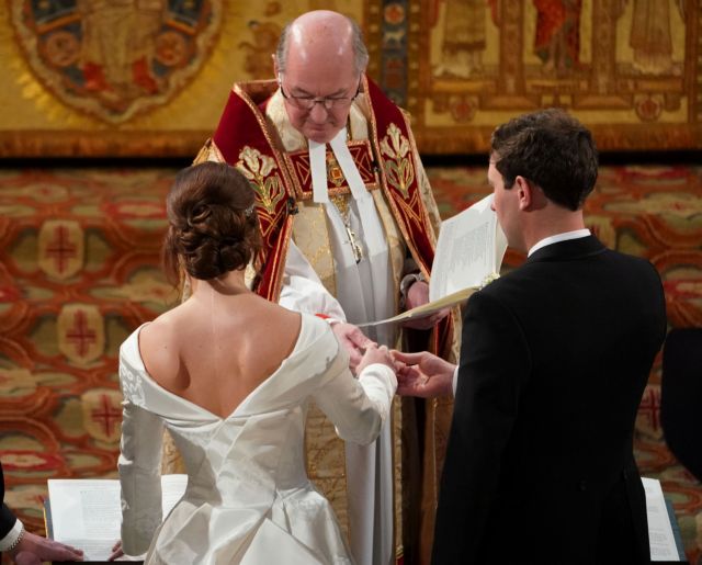 Και επίσημα ζευγάρι αποτελούν πλέον η πριγκίπισα Ευγενία και ο Τζακ Μπρουκσμπανκ. Η εγγονή της βασίλισσας Ελισάβετ νυμφεύτηκε την Παρασκευή 12/10, τον εκλεκτό της καρδιάς της, σε μια ομολογουμένως παραμυθένια τελετή στο παρεκκλήσι του Αγίου Γεωργίου στο κάστρο Γουίνσδορ, παρουσία της γιαγιάς της, και πλήθους διασημοτήτων, βασιλικών και VIP προσκεκλημένων. Στο γάμο, που πολυσυζητήθηκε και για το κόστος του, η νύφη φορούσε μια δημιουργία των Peter Piloto και Christopher de Vos, με ανοιχτή πλάτη. Ενδεικτικά είναι τα ενσταντανέ, που ακολουθούν.