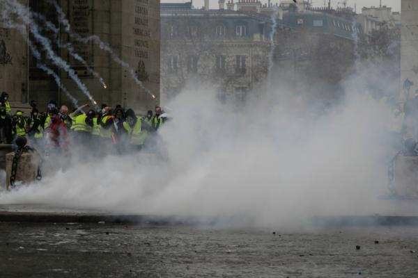 Οι καπνοί από τις φωτιές που έβαλαν διαδηλωτές κάλυψαν μεγάλο μέρος της πόλης, ενώ δεν έλειψαν και οι προσπάθειες βεβήλωσης της Αψίδας του Θριάμβου, κάτι που αναγνώρισε και ο ίδιος ο Μακρόν.
