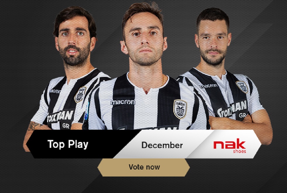 Μία εκπληκτική ασίστ, μία απίθανη μπαλιά και ένα τάκλιν αυτοθυσίας διεκδικούν το βραβείο «Play of the Month» του Δεκεμβρίου στον ΠΑΟΚ. Η μάχη εξελίσσεται σε ντέρμπι με τον Σάκχοφ (43,61%) να προηγείται έχοντας αφήσει πίσω του τους Κρέσπο (31,09%) και Μαουρίσιο (25,3%).