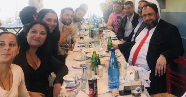 Παρόντες σε αυτό το τραπέζι, εκτός του κ. Μαρινάκη που διακρίνεται και στη φωτογραφία, ήταν μεταξύ άλλων η Φιλιώ Μανωλιουδάκη, η Σταυρούλα Αντωνάκου, η Ανδριάννα Ζαρακέλη, ο Γιάννης Μελάς, ο Ανδρέας Βεντούρης, ο Νικήτας Γκόλφης, ο Κούλης Δουρέκας, ο Γιώργος Λέντζος και ο Μύρωνας Σπινθάκης.