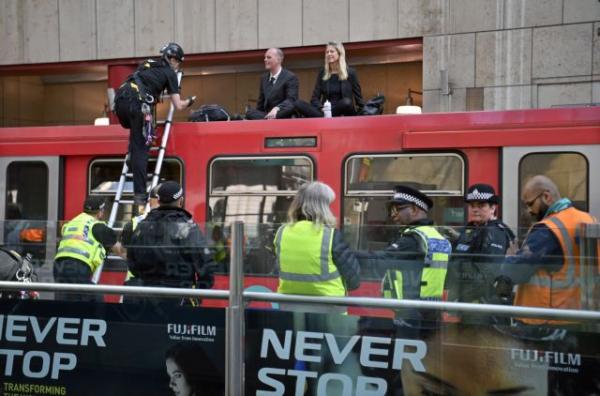 Η τρίτη ημέρα διαδηλώσεων από ακτιβιστές για το κλίμα σημαδεύτηκε από επεισόδια, με την αστυνομία να έχει προχωρήσει σε τουλάχιστον 300 συλλήψεις τις δύο πρώτες μέρες. Δύο ακτιβιστές σκαρφάλωσαν στην οροφή ενός τρένου DLR (Docklands Light Railway) στον σταθμό του Canary Wharf, στα Ντόκλαντς του Λονδίνου.