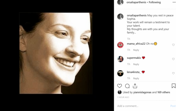 Thank you @sophiakokosalaki for making us all feel proud to be Greek. For communicating the values of our culture far beyond our borders through your incredible talent, intelligence and charisma. In the short time I had the privilege of knowing you you showed me, before I even knew myself, what real strength means and the razor sharp focus that is needed in our industry. I have always been in awe of your determination and the values you lead your life with, always in your own terms. The news today shocked me and it’s difficult to come to terms with it.. It is very very sad. Rest peacefully Sophia.. Sending my most heartfelt condolences to those who were closest to you and to your family. ? #sophiakokosalaki