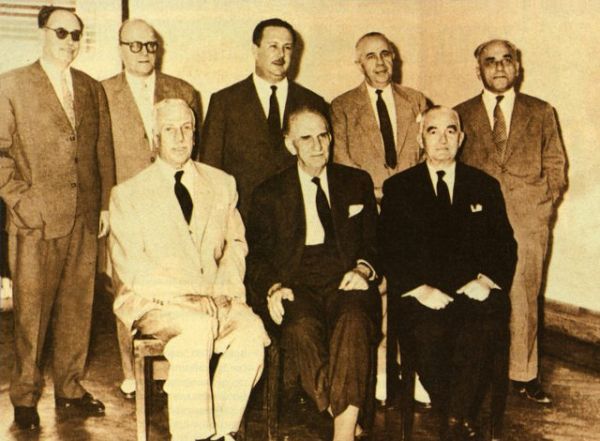 Οι ιδρυτές της Ενώσεως Κέντρου, (όρθιοι) Ηλ. Τσιριμώκος, Στ. Στεφανόπουλος, Σ. Παπαπολίτης, Στ. Κωστόπουλος, Αλεξ. Μπαλτατζής, (καθήμενοι) Π. Κατσώτας, Γ. Παπανδρέου, Γ. Αθανασιάδης- Νόβας