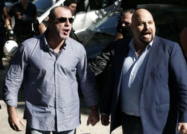 Ο Νίκος Μίχος με τον άλλοτε συνάδελφό του στη Χρυσή Αυγή, Παναγιώταρο. (ΠΗΓΗ: REUTERS)