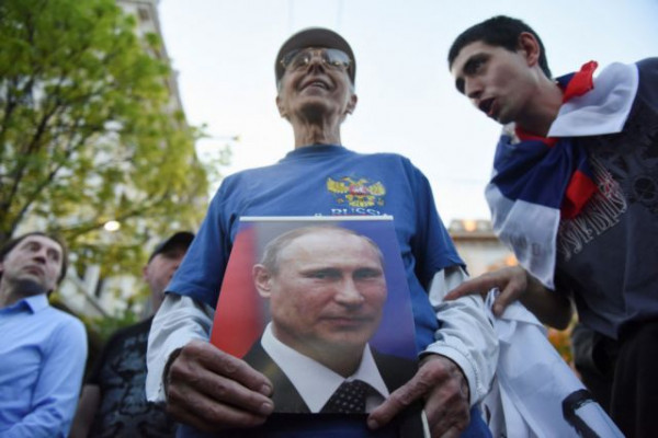Πλήθος διαδηλωτών, ανάμεσά τους πολλοί από υπερεθνικιστικές οργανώσεις, συμμετείχε στην πορεία από το κέντρο της πόλης προς τη ρωσική πρεσβεία, όπου εκτόξευσαν φωτοβολίδες και έπαιξαν τους εθνικούς ύμνους της Ρωσίας και της Σερβίας, χαιρετίζοντας τις δύο χώρες ως αδελφικά Έθνη.