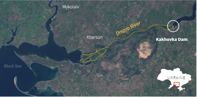 Η κατάρρευση του φράγματος Nova Kakhovka την Τρίτη συνέβη καθώς η Ουκρανία προετοιμάζει μια μεγάλη αντεπίθεση κατά της εισβολής της Ρωσίας, πιθανότατα την επόμενη μεγάλη φάση του πολέμου. Και οι δύο πλευρές αντάλλαξαν ευθύνες για τους συνεχιζόμενους βομβαρδισμούς σε όλη την κατοικημένη ζώνη πλημμύρας και προειδοποίησαν για τις παρασυρόμενες νάρκες που ξεθάφτηκαν από τις πλημμύρες.