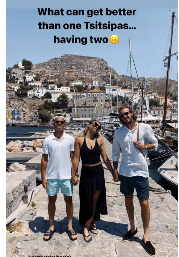 Σε ένα από τα στιγμιότυπα, η Πάουλα Μπαντόσα πόζαρε με τον Στέφανο Τσιτσιπά αλλά και τον αδελφό του και συνόδευσε τη φωτογραφία με μια χιουμοριστική λεζάντα.