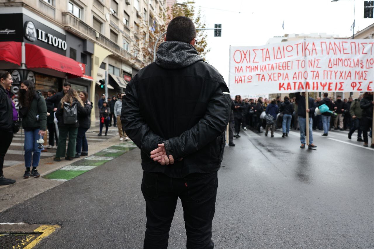 Νέο πανεκπαιδευτικό συλλαλητήριο στο κέντρο της Αθήνας πραγματοποιούν φοιτητές και εκπαιδευτικοί, οι οποίοι κλιμακώνουν τις κινητοποιήσεις τους όσο πλησιάζει η ημέρα κατάθεσης του νομοσχεδίου του υπουργείου Παιδείας για τα ιδιωτικά πανεπιστήμια.