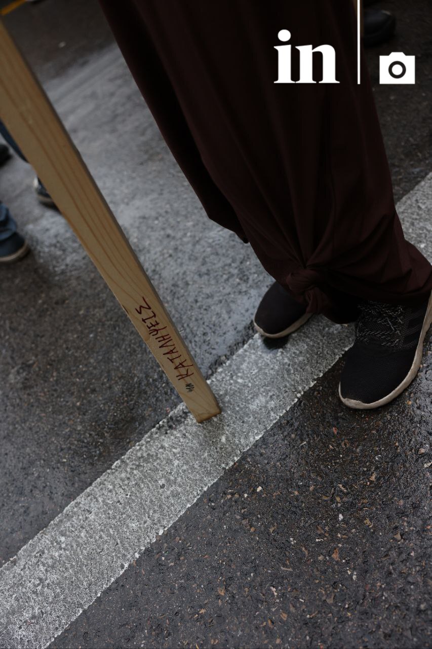 Όταν η πορεία έφτασε έξω από το ΕΒΕΘ, άτομα που συμμετείχαν στην πορεία πέταξαν κόκκινη μπογιά στο κτήριο.