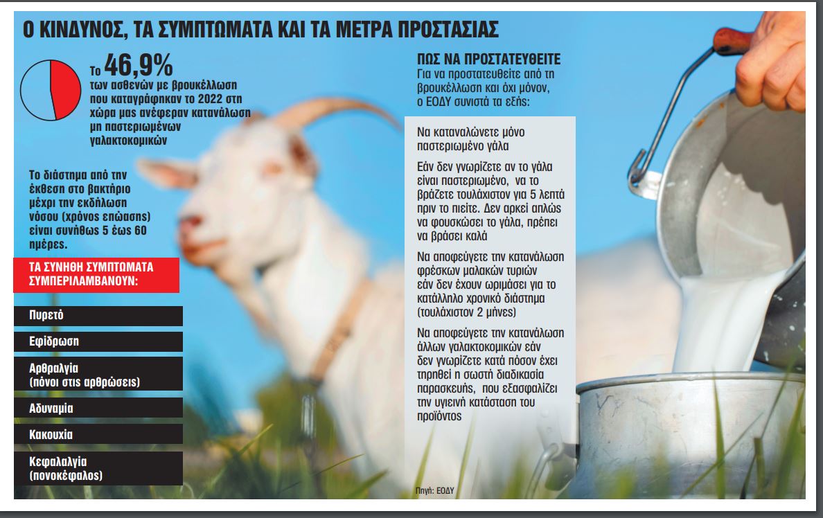 Η κατανάλωση μη παστεριωμένου γάλακτος φαίνεται πως αποτελεί σπάνια, πλην όμως όχι αμελητέα, συνήθεια, κυρίως στις αγροτικές περιοχές της χώρας μας, εγκυμονώντας σοβαρούς κινδύνους για την υγεία. Σύμφωνα με πρόσφατη έκθεση του Ευρωπαϊκού Κέντρου Ελέγχου και Πρόληψης Νοσημάτων (ECDC) η Ελλάδα συγκέντρωσε (και) το 2022 τα περισσότερα κρούσματα βρουκέλλωσης – μίας νόσου που κατά κανόνα μεταδίδεται από τα μη παστεριωμένα γαλακτοκομικά προϊόντα.