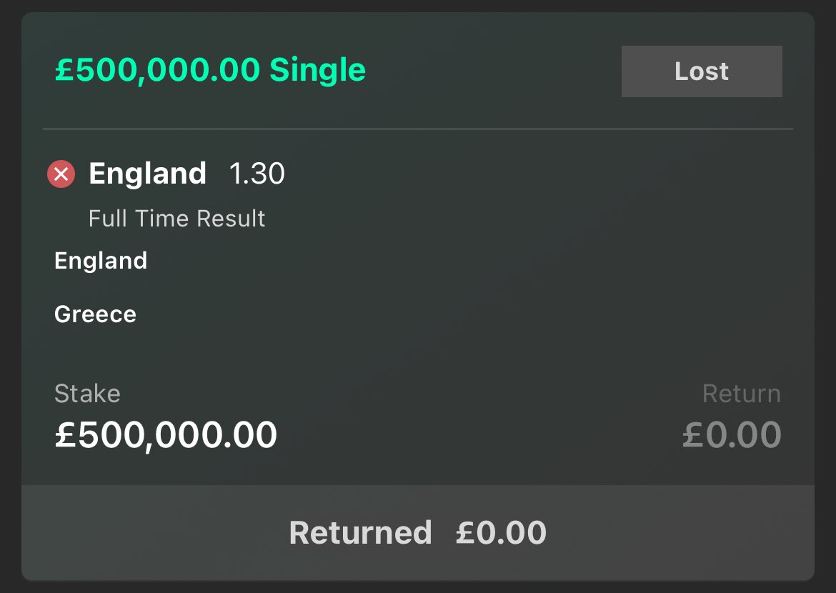 Ισως ο μεγαλύτερος χαμένος της ιστορικής για το ελληνικό ποδόσφαιρο, βραδιάς του Γουέμπλεϊ ήταν ο λάτρης του στοιχήματος που πόνταρε 500.000 στερλίνες για να αποκομίσει κέρδος 150.000 στερλίνες αλλά κατέληξε στον «κουβά».