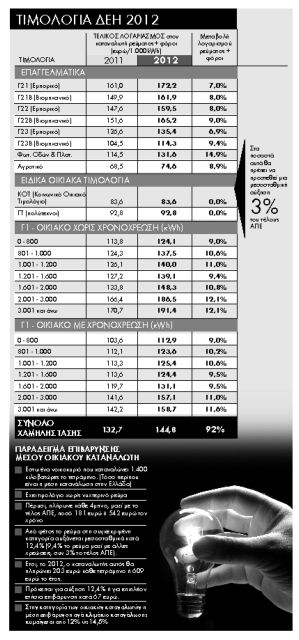 Σύμφωνα με την ανακοίνωση της ΔΕΗ, αλλά και προ ημερών του κ. Παπακωνσταντίνου, από τη μεσοσταθμική αύξηση 9,2%, μόνον το 1,1% αφορά τη μεταβολή του κόστους ενέργειας. Το υπόλοιπο 8,1% αφορά αυξήσεις του κόστους: 3,5% για υπηρεσίες κοινής ωφέλειας (λόγω παροχής του κοινωνικού οικιακού τιμολογίου, επιβολής ΕΦΚ στο μαζούτ και στο ντίζελ και αύξησης των διεθνών τιμών καυσίμων), 2,6% είναι η επίπτωση από την επιβολή ΕΦΚ στο φυσικό αέριο, 0,9% από την επιβολή του τέλους λιγνίτη και 1,1% από τον ΦΠΑ