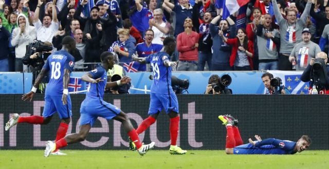 Στον χθεσινό προημιτελικό η Γαλλία κατάφερε με δύο γκολ νωρίς (Ζιρού 12′, Πογκμπά 20′) να αποβάλει το άγχος που της είχε προκαλέσει τεράστια προβλήματα στα προηγούμενα παιχνίδια. Ο Αντουάν Γκριεζμάν υπήρξε και πάλι ο ηγέτης (ένα γκολ, δύο ασίστ). Ο άσος της Ατλέτικο Μαδρίτης έφτασε τα τέσσερα γκολ και διεκδικεί τον τίτλο του πρώτου σκόρερ της διοργάνωσης. Η Γαλλία προηγήθηκε 4-0 στο 45λεπτο (Παγέ 42′, Γκριεζμάν 45′) και έγινε η πρώτη ομάδα στην ιστορία των Euro που πετυχαίνει τέσσερα γκολ σε ένα ημίχρονο.