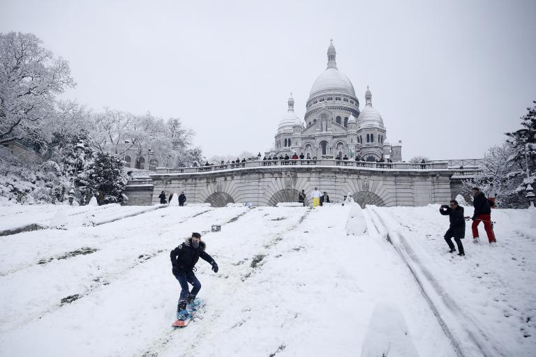 Ένα παχύ στρώμα χιονιού κάλυπτε το πρωί τα πεζοδρόμια του Παρισιού και της ευρύτερης περιοχής και η γαλλική εταιρεία σιδηροδρόμων SNCF συνέστηνε στους πολίτες να αναβάλουν τις μετακινήσεις τους, ενώ οι αρχές του Παρισιού ζητούσαν από τους πολίτες να μην χρησιμοποιούν τα αυτοκίνητά τους.
