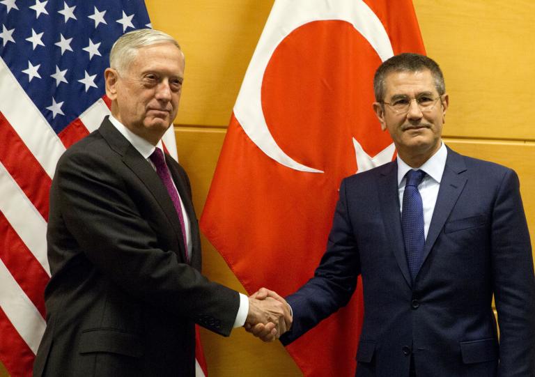 Ο Αμερικανός υπουργός Άμυνας Τζιμ Μάτις συναντήθηκε με τον Τούρκο ομόλογό του, Νουρετίν Τζανικλί, στο περιθώριο της συνόδου του ΝΑΤΟ στις Βρυξέλλες και του ζήτησε η Άγκυρα να παραμείνει επικεντρωμένη στον πόλεμο εναντίον του Ισλαμικού Κράτους στη Συρία, ανακοίνωσε την Πέμπτη το Πεντάγωνο.