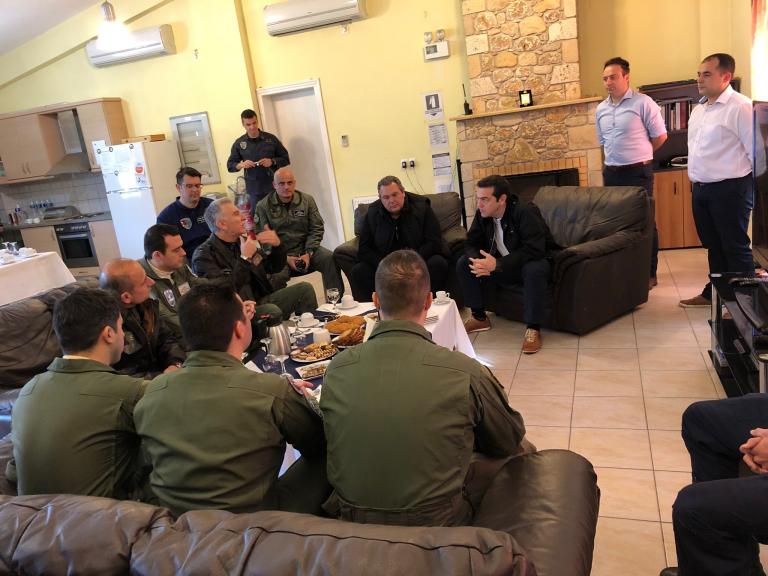 Σύμφωνα με ανακοίνωση του Γραφείου Τύπου του υπουργείου Εθνικής Αμυνας ο κ. Τσίπρας συνομίλησε για αρκετή ώρα μαζί τους, καθώς και με το υπόλοιπο προσωπικό της μονάδας, τους συνεχάρη για το έργο τους και τους ευχήθηκε «καλή δύναμη» στην αποστολή τους. Τους ευχήθηκε, επίσης, για τη Σαρακοστή.
