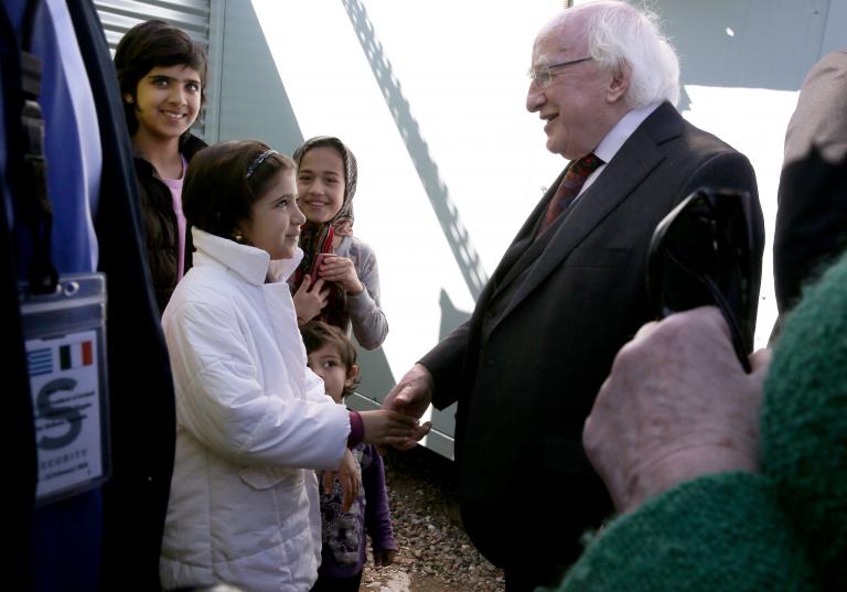 Ο πρόεδρος της Ιρλανδίας υπενθύμισε ότι η Ιρλανδία έχει δεχτεί 863 άτομα από την Ελλάδα για μετεγκατάσταση στη χώρα του, ενώ άλλες 150 περιπτώσεις ελέγχονται ακόμα λόγω γραφειοκρατικών ζητημάτων ή λόγω ζητημάτων ασφαλείας. «Αν λυθούν δυσκολίες που υπάρχουν με τα συστήματα ασφαλείας στην Ιταλία, θα τα πάμε πολύ καλά, θα μπορούμε να είμαστε στις κορυφαίες τέσσερις ή πέντε χώρες της Ευρώπης που επιδεικνύουν ευρωπαϊκή υπευθυνότητα», τόνισε.