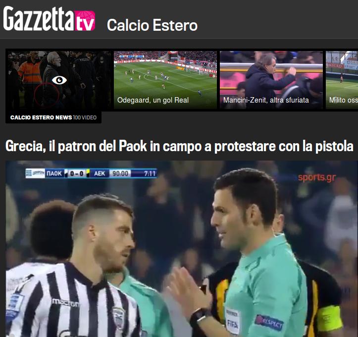Στα βασικά θέματα και της ιταλικήςGazzetta dello Sportτο χάος της Τούμπας και η εισβολή Σαββίδη στο γήπεδο με το όπλο στην μέση!
