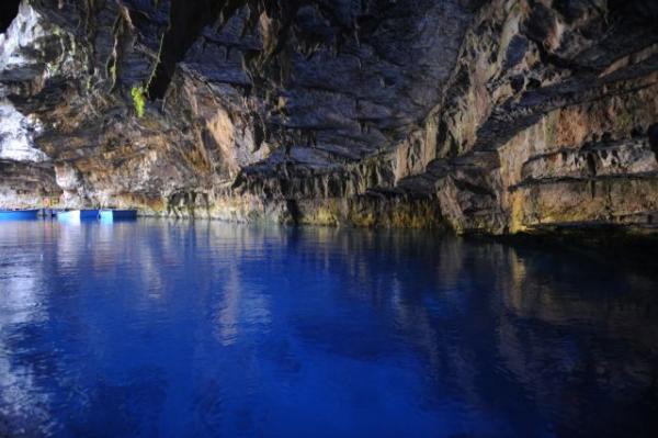Τολιμνοσπήλαιο Μελισσάνης, δυτικά της Σάμης, κοντά στον οικισμό τουΚαραβόμυλου, προσφέρει στους επισκέπτες ένα φαντασμαγορικό θέαμα με τους υπέροχους ιριδισμούς των νερών, καθώς οι ακτίνες του ήλιου περνούν από το τμήμα της οροφής του σπηλαίου που έχει καταρρεύσει.