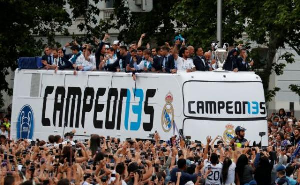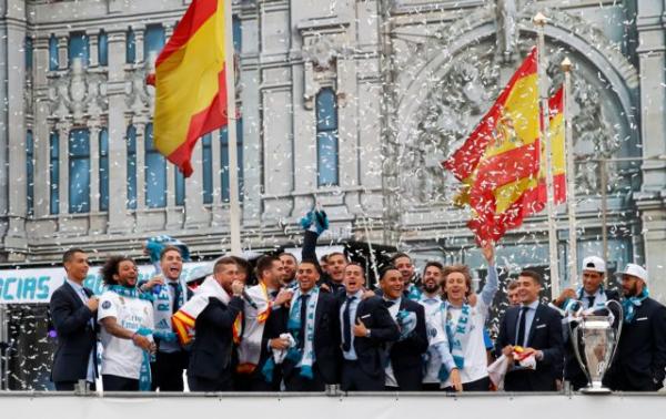 Ένα τεράστιο σε όγκο πλήθος, υποδέχθηκε στην Μαδρίτη τους πρωταθλητές Ευρώπης. Κατά την άφιξή της στην ισπανική πρωτεύουσα η αποστολή της Ρεάλ γνώρισε πραγματική αποθέωση για την κατάκτηση του Champions League για 3η συνεχόμενη χρονιά, 4η την τελευταία πενταετία και 13η συνολικά στην ιστορία της.