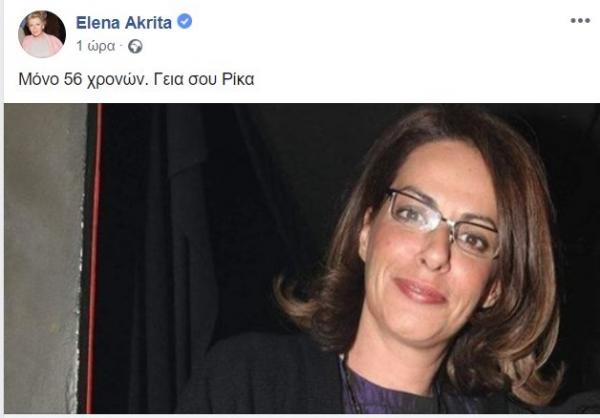 Ένας από τους φίλους της, ο Σταμάτης Κραουνάκης αποχαιρέτησε με τον δικό του τρόπο την Ρίκα του γράφοντας στον προσωπικό του λογαριασμό στο facebook: