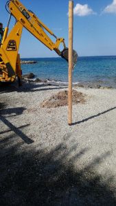 Οι εργασίες ξεκίνησαν από το beach bar ξενοδοχείου (47ο χλμ Αθηνών-Σουνίου), που βρισκόταν εντός του αιγιαλού, για το οποίο εκκρεμούσαν πάνω από 20 χρόνια (!) τελεσίδικα πρωτόκολλα κατεδάφισης από την Κτηματική Υπηρεσία Ανατολικής Αττικής. Μεταξύ άλλων κατεδαφίζονται κατασκευές από ξύλο ή μπετό (στέγαστρα, αποδυτήρια, διάδρομος, τουαλέτες, δάπεδο με ψαθωτό στέγαστρο κα) καθώς και παρεμβάσεις στο φυσικό περιβάλλον του αιγιαλού. Σε όλη τη διαδικασία ήταν παρών εισαγγελέας, πιστοποιώντας ότι όλες οι πράξεις κατεδάφισης είναι απόλυτα σύμφωνες με το περιεχόμενο των πρωτοκόλλων.