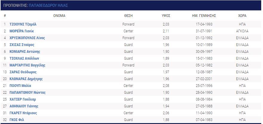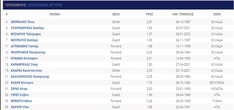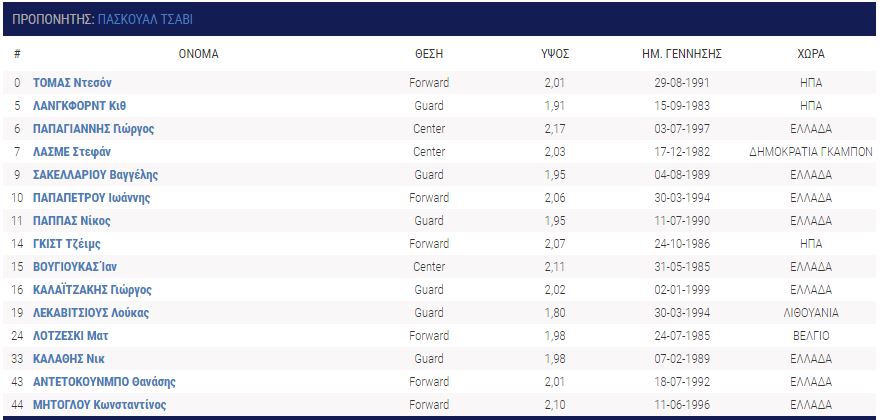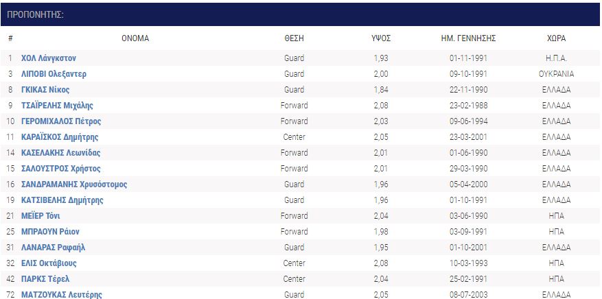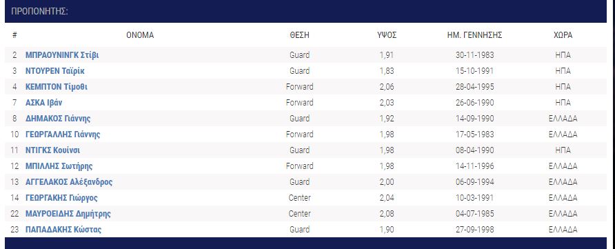 Ηρθαν: Ντέβιον Μπέρι (Ράπτορς 905), Ι Τζέι Σίνγκλερ (Βίρτσμπουργκ), Νταρνέλ Χάρις (Λιέγη) Μπράντον Μπράουν, Τζίμι Τέιλορ (Σίου Φολς), Τέιλορ Τζονς (Πιονέρος), Νίκος Καμαριανός (Νέα Κηφισιά), Νίκος Χουγκάζ (Περιστέρι), Ανδρέας Ρουμελιώτης (από τις ακαδημίες), Ιάσων Δημητρακόπουλος (από τις ακαδημίες).