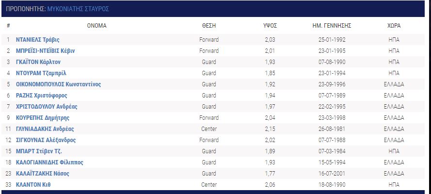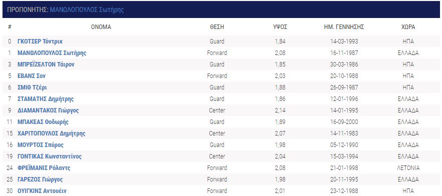 Ετσι δημιουργήθηκε ένα αρκετά δαπανηρό ρόστερ, ενώ στη θέση του προπονητή βρίσκεται ο Σωτήρης Μανωλόπουλος. Ο Ελληνας τεχνικός και οι συνεργάτες του επέλεξαν παίκτες που διαθέτουν εμπειρία από την κατηγορία, όπως οι Γουίγκινς (Λαύριο), Μπράζελτον(Πανιώνιος), Έβανς (Προμηθέας) και Γκότσερ (Λαύριο).