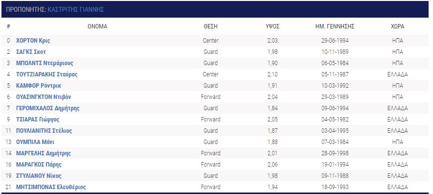 Ουσιαστικά με εξαίρεση τον λευκό Αμερικανό φόργουορντ Ι Τζέι Σίνγκλερ οι υπόλοιποι ξένοι δεν έχουν ιδιαιίτερες παραστάσεις. ενώ ουσιαστικά μόνο οι Νίκος Δίπλαρος και Γιώργος Καμπερίδης παρέμειναν από την περσινή ομάδα.