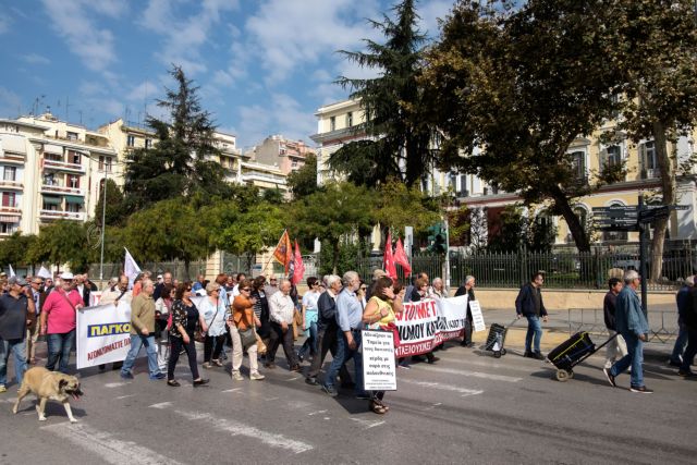 Πλήθος συνταξιούχων, μέλη των Συνεργαζόμενων Συνταξιουχικών Οργανώσεων Θεσσαλονίκης, συγκεντρώθηκε και πραγματοποίησε πορεία στο κέντρο της πόλης, ζητώντας την κατάργηση του νόμου Κατρούγκαλου και την δικαίωση τους.