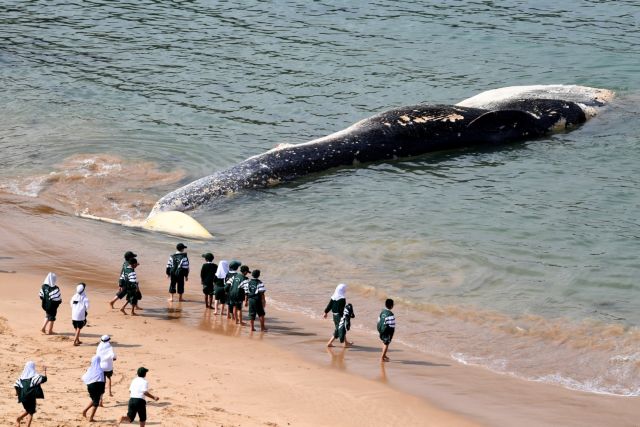 Η μαμά – φάλαινα, όπως είπαν μετά οι διασώστες, ήταν δίπλα τους σχεδόν και παρακολουθούσε με αγωνία να προσπαθούν να σώσουν το μωρό της.