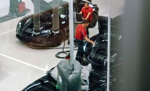 H νέα Taycan βγαίνει από τη γραμμή παραγωγής, στο εργοστάσιο της φίρμας στη Γερμανία. Είναι το πρώτο αμιγώς ηλεκτροκίνητο μοντέλο, που θα λανσαριστεί στην αγορά το 2019. Είναι ένα σπορ σεντάν αυτοκίνητο, με την γνώριμη σχεδιαστική ταυτότητα της φίρμας – κυρίως στο εμπρός τμήμα – το οποίο ως ηλεκτρικό καυχιέται για τις εξαιρετικές επιδόσεις του, που παραπέμπουν σε μονοθέσιο της Formula1.