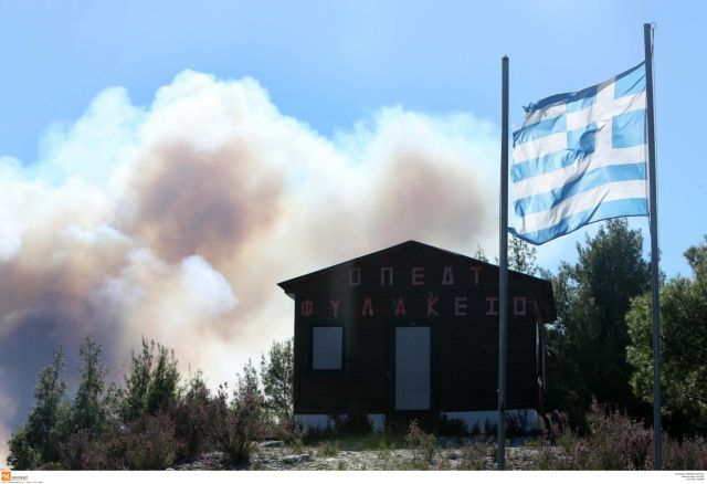 Το πύρινο μέτωπο επεκτείνεται στα τρία χιλιόμετρα.