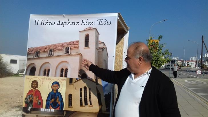 Kάτοικοι της Κάτω Δερύνειας προτίθενται να πραγματοποιήσουν ειρηνική εκδήλωση διαμαρτυρίας. Έχουν στήσει ένα μικρό περίπτερο με φωτογραφίες που απεικονίζουν την ερημωμένη εκκλησία της Αγίου Τιμοθέου και Αγίας Μαύρης, το δημοτικό σχολείο Κάτω Δερύνειας και κατοικίες της περιοχής.