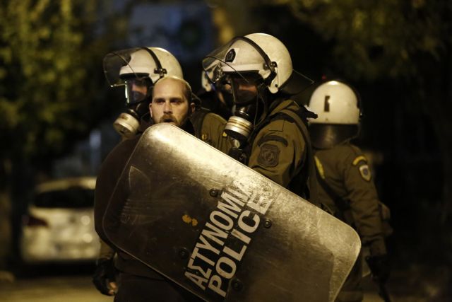 Λίγο πριν από τις οκτώ το βράδυ αντιεξουσιαστές με σιδηροτροχό έκοψαν την πύλη του Πολυτεχνείου.