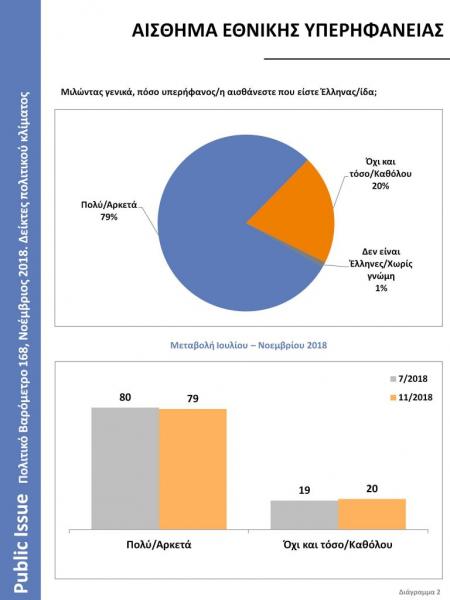 Αναφορικά με το πόσο υπερήφανοι αισθάνονται οι Ελληνες, 8 στους 10 τονίζουν ότι είναι πολύ ή αρκετά υπερήφανοι.