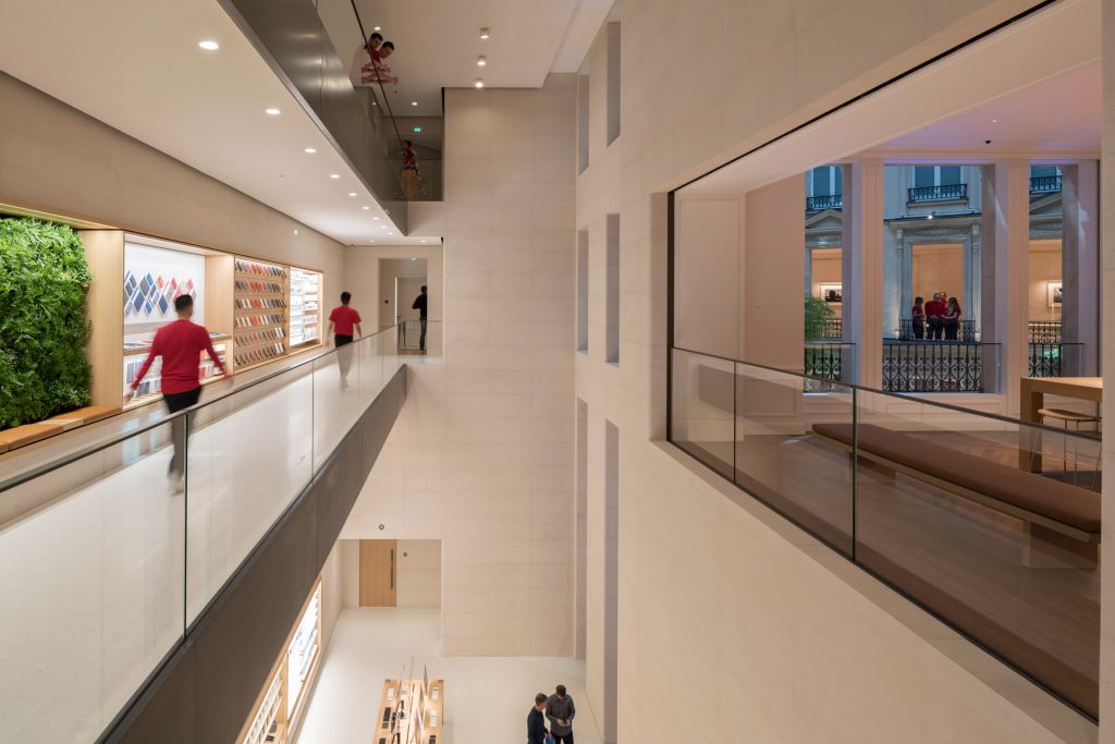Το κτίριο, το οποίο από τις 18 Νοεμβρίου φιλοξενεί το κατάστημα της Apple, οι αρχιτέκτονες στο Foster + Partners το περιέγραψαν ως «την πεμπτουσία του παρισινού κτιρίου κατοικιών». Αρχικά είχε σχεδιαστεί ως συγκρότημα αστικών διαμερισμάτων, αλλά στο διάβα του χρόνου προστέθηκαν και άλλα στοιχεία. Οι αρχιτέκτονες θέλησαν να ζωντανέψουν ξανά το αρχικό πνεύμα του κτιρίου, αποκαθιστώντας τους διασυνδεόμενους χώρους ενός παρισινού διαμερίσματος του 19ου αιώνα και αφαιρώντας τις προσθήκες οι οποίες αντικαταστάθηκαν από σύγχρονους χώρους.