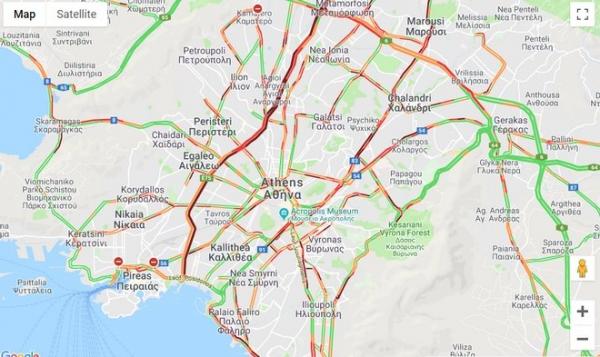 Κίνηση υπάρχει επίσης και στην κάθοδο από την Αγία Παρασκευή μέχρι τον κόμβο των Αμπελοκήπων, ενώ ουρές έχουν σχηματιστεί και στην Κατεχάκη, την Ηλιουπόλεως και τη Βασιλέως Κωνσταντίνου.