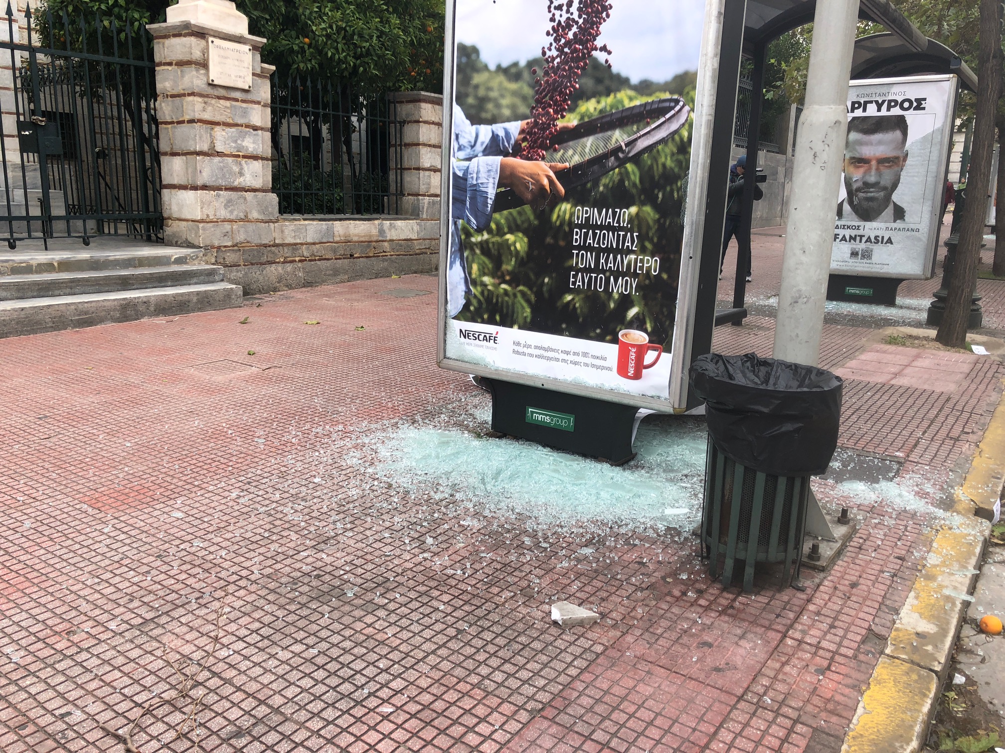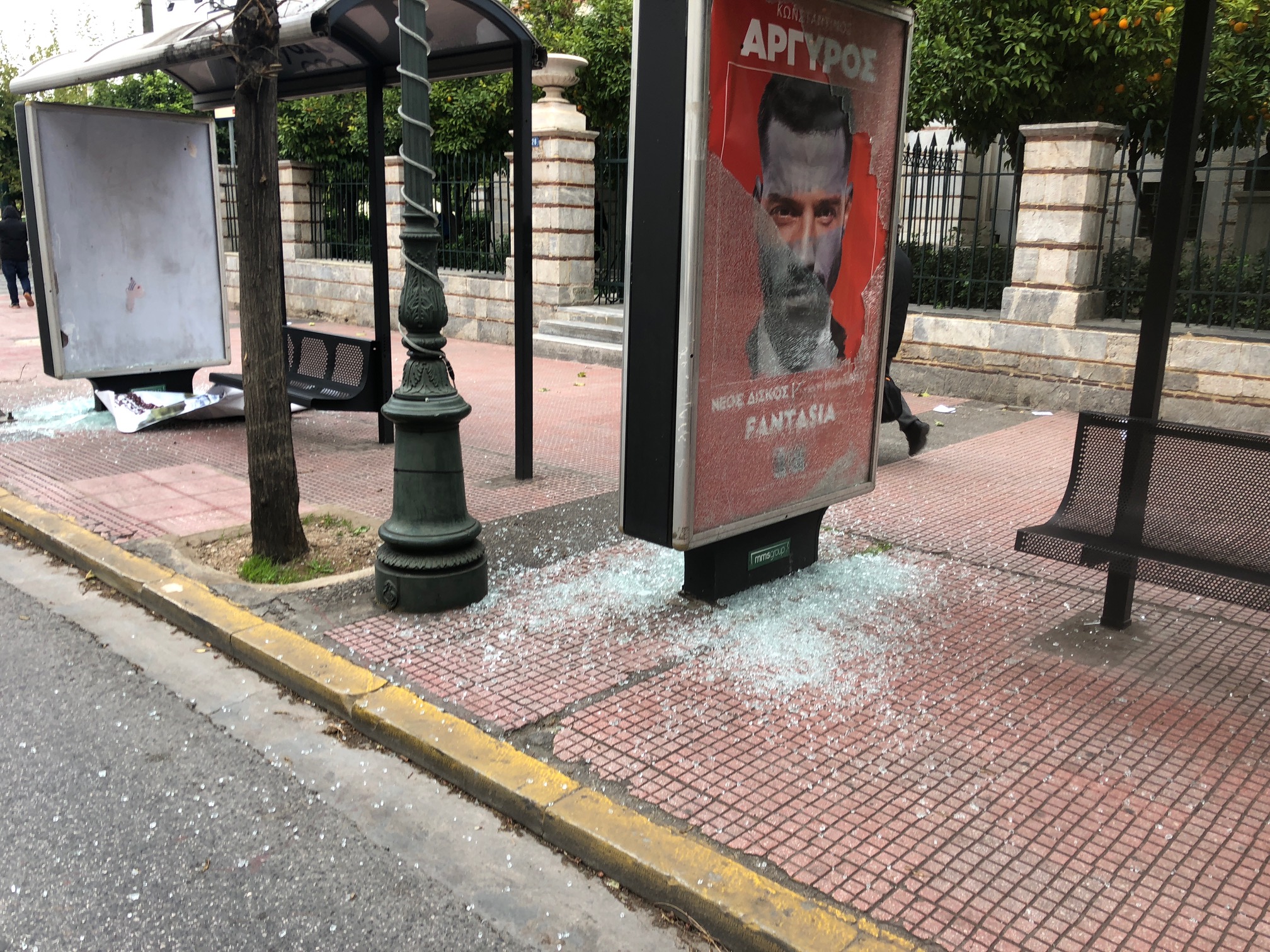 Ζημιές προκάλεσαν και σε στάσεις λεωφορείων.