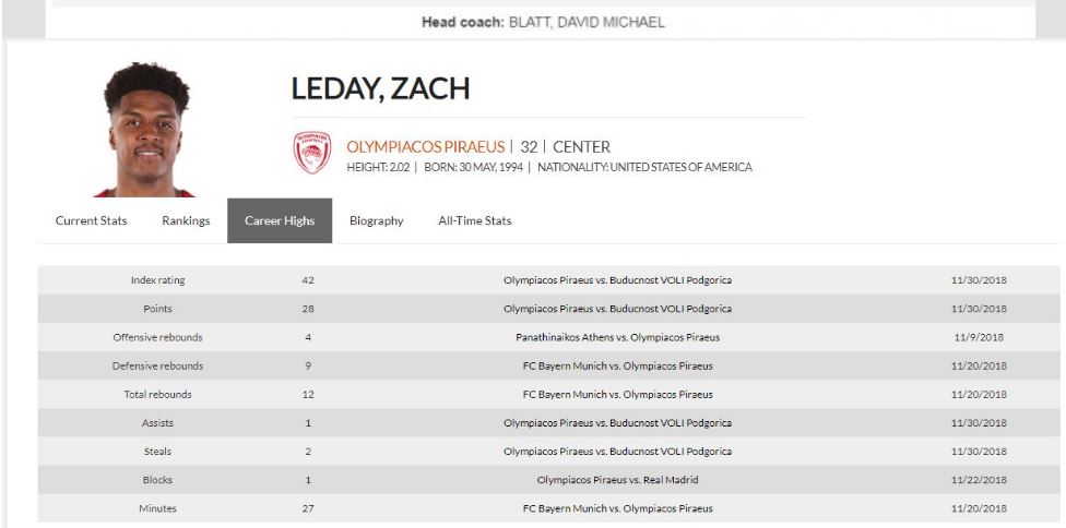 Με αυτή την επίδοση έσπασε τα περισσότερα προσωπικά ρεκόρ του στην Ευρωλίγκα, έστω κι αν η καριέρα του σε αυτή είναι σύντομη. Σημαντικότερο αυτό της παραγωγικότητας, καθώς με τους 28 πόντους που σημείωσε, το διπλασίασε! Το προηγούμενο ήταν οι 14 πόντοι που είχε πετύχει κόντρα στη Χίμκι.