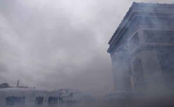 Οι καπνοί από τις φωτιές που έβαλαν διαδηλωτές κάλυψαν μεγάλο μέρος της πόλης, ενώ δεν έλειψαν και οι προσπάθειες βεβήλωσης της Αψίδας του Θριάμβου, κάτι που αναγνώρισε και ο ίδιος ο Μακρόν.