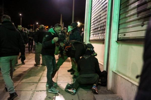 Λίγη ώρα αργότερα, ομάδα κουκουλοφόρων εξήλθε της Παλαιάς Φιλοσοφικής Σχολής και επιτέθηκε σε διμιρίες των ΜΑΤ με πέτρες και μολότοφ. Οι αστυνομικοί απάντησαν με χρήση χημικών.