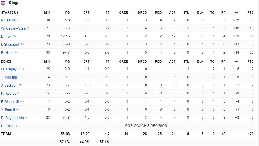 Από τους Ράπτορς ξεχώρισε για ακόμη ένα παιχνίδι ο Καουάι Λέοναρντ (32 πόντοι, 4 κλεψίματα), ενλω και ο Γιόνας Βαλαντσιούνας ήταν σε καλή βραδιά (24 πόντοι, 8 ριμπάουντ).