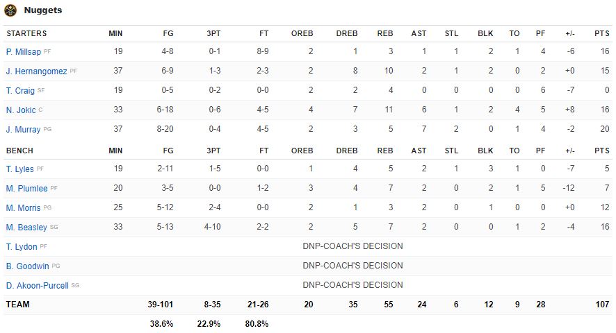 Από την πλευρά των ηττημένων, για ακόμη ένα παιχνίδι του δίδυμο Γκρίφιν-Ντράμοντ ήταν εξαιρετικό, με τον αθλητικό φόργουορντ να έχει 31 πόντους, 12 ριμπάουντ και 6 ασίστ, ενώ ο σέντερ του Ντιτρόιτ είχε 21 πόντους και 10 ριμπάουντ.
