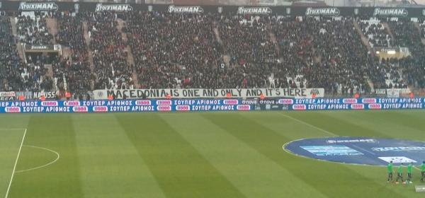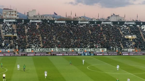 Οι φίλοι του Δικέφαλου του Βορρά, στην κεντρική κερκίδα του γηπέδου της Τούμπας (στα κάγκελα των θυρών 5-6) αναρτούν εδώ και καιρό το συγκεκριμένο πανό που γράφει στα αγγλικά: «Macedonia is one and only and its here» («Η Μακεδονία είναι μία και μοναδική και είναι εδώ»).