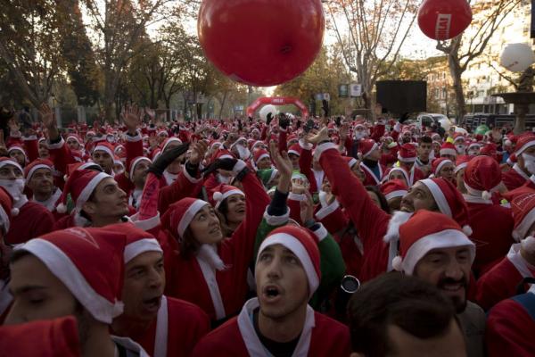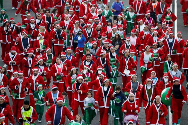 Περισσότεροι από 7.000 άνθρωποι, που ντύθηκαν Άγιοι Βασίληδες, κατέκλυσαν σήμερα το κέντρο της Μαδρίτης για να τρέξουν σε έναν αγώνα δρόμου με φιλανθρωπικό σκοπό, προκειμένου να συγκεντρωθούν χρήματα για τη μάχη κατά του καρκίνου.