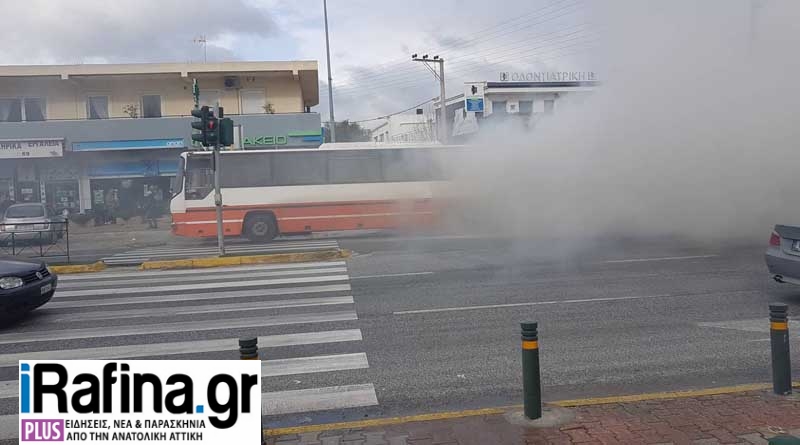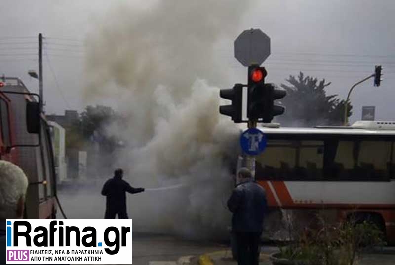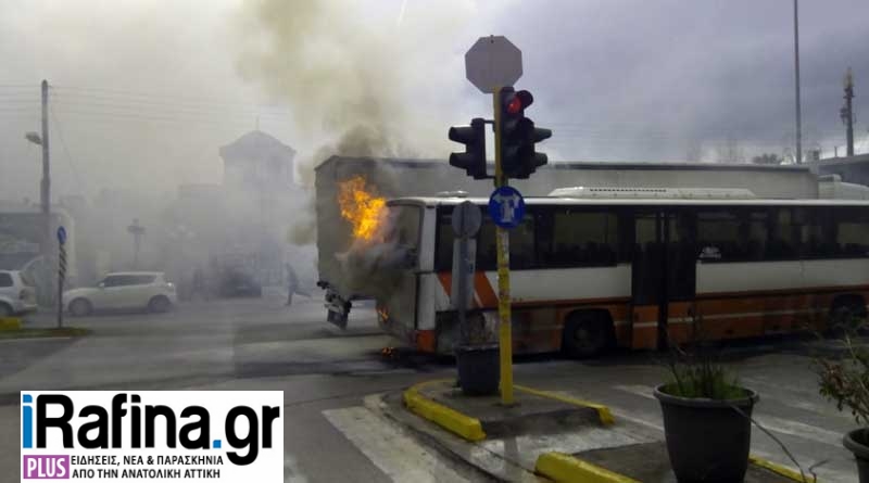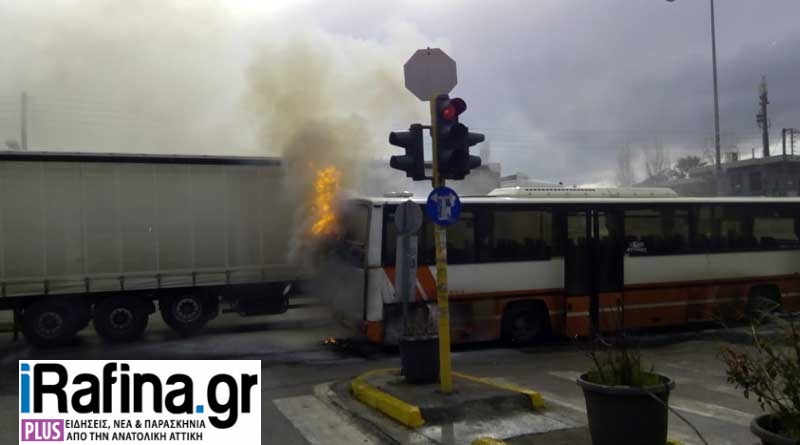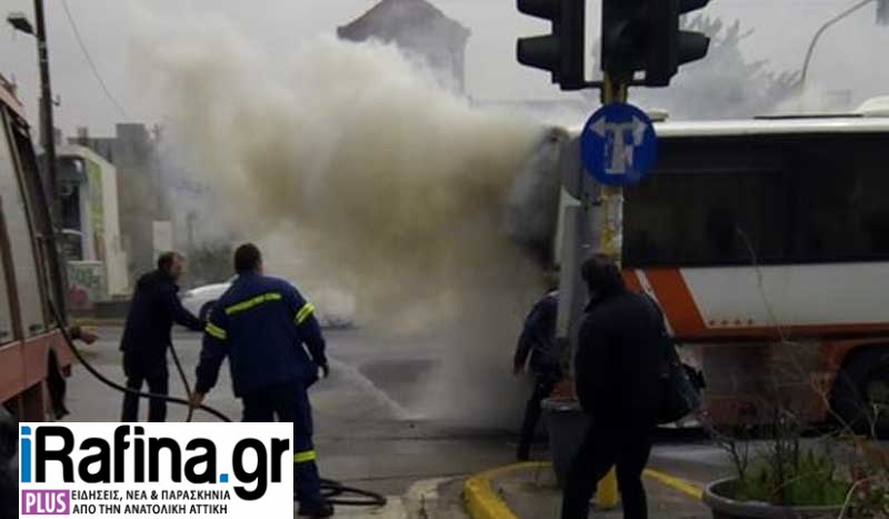 Οι επιβάτες κατέβηκαν έντρομοι από το φλεγόμενο ΚΤΕΛ στο Πικέρμι, ενώ στο σημείο βρίσκονται ισχυρές πυροσβεστικές δυνάμεις για να κατασβέσουν τη φωτιά.